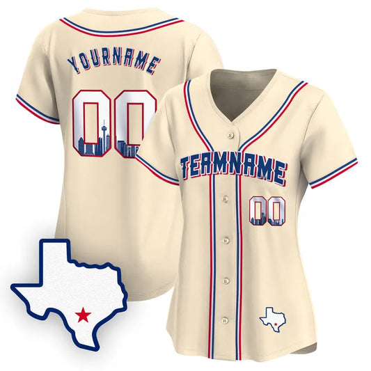 CUSTOM CREAM ROYAL SAN ANTONIO TEXAS PATTERN BASEBALL JERSEY - EMBROIDERED