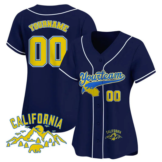 CUSTOM NAVY ALTERNATE BLUE YELLOW CALIFORNIA MOUNTAIN BASEBALL JERSEY - EMBROIDERED