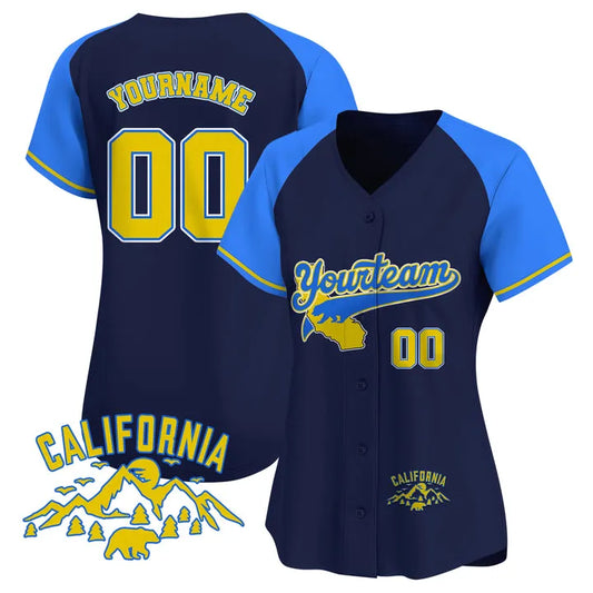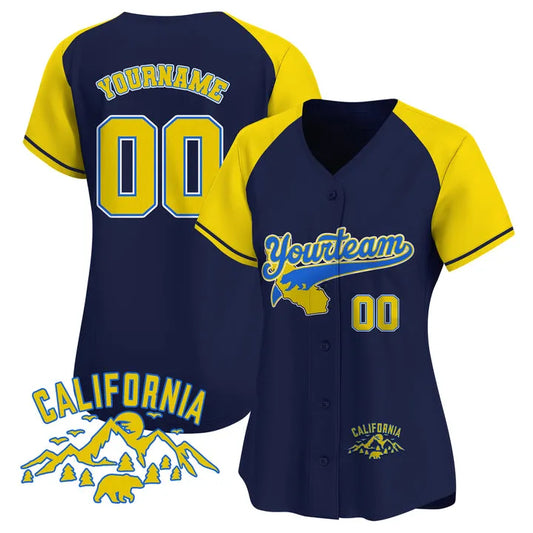 CUSTOM NAVY YELLOW CALIFORNIA MOUNTAIN BASEBALL JERSEY - EMBROIDERED