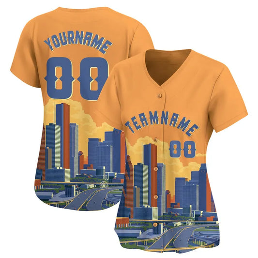CUSTOM ORANGE 3D HOUSTON CITY TEXAS PATTERN BASEBALL JERSEY - PRINTED