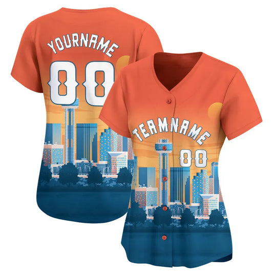 CUSTOM ORANGE 3D DALLAS CITY TEXAS PATTERN BASEBALL JERSEY - PRINTED