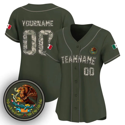 CUSTOM OLIVE GREEN CAMO - BLACK MEXICO BASEBALL JERSEY - EMBROIDERED