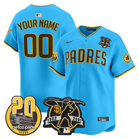 Padres Tony Gwynn & Petco Park 20th Patch Vapor Premier Limited Custom Jersey V2 ·All Stitched