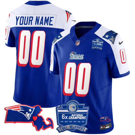 Patriots Bill Belichick 6x Champions Patch Vapor Custom Jersey - All Stitched