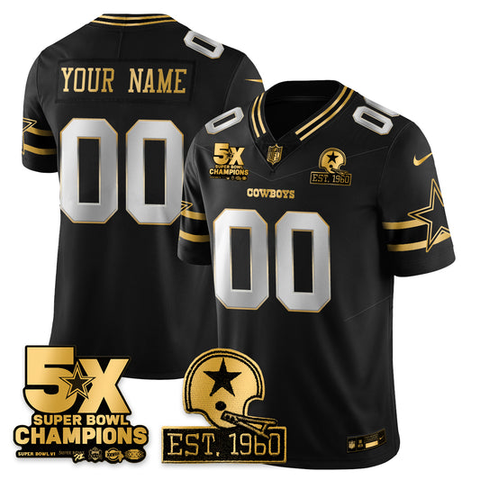 DAL Est. 1960 & Texas Patch Gold Vapor Limited Custom Jersey - All Stitched