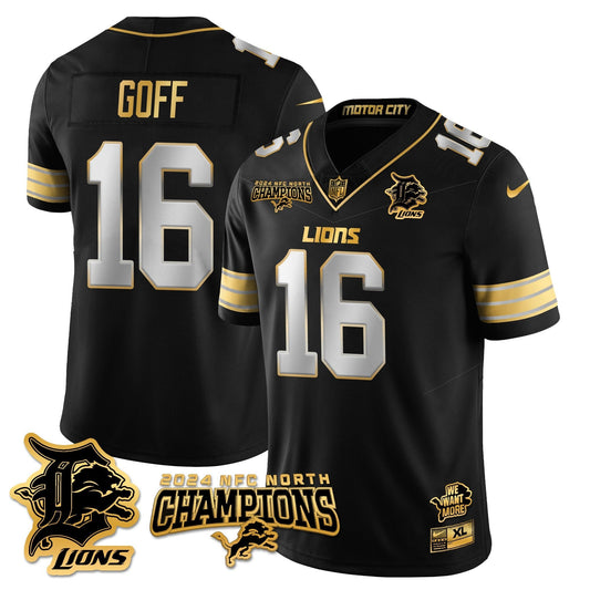 DET 2024 NFC North Champions Gold Jersey N1 - All Stitched
