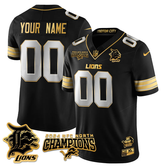 Custom Gender/Name DET 2024 NFC North Champions Gold Jersey N1 - All Stitched