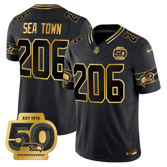 Seattle Seahawks 'Gothic Rain City Shadows Edition' Vapor Jersey - 50th Anniversary Patch - All Stitched