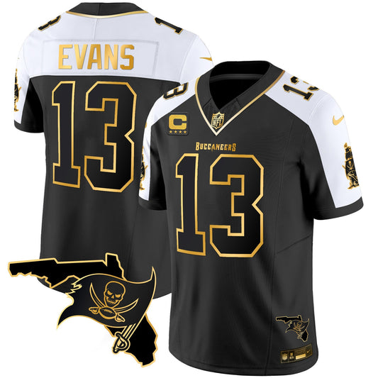 Buccaneers Florida Patch Gold Trim Vapor Custom Jersey - All Stitched