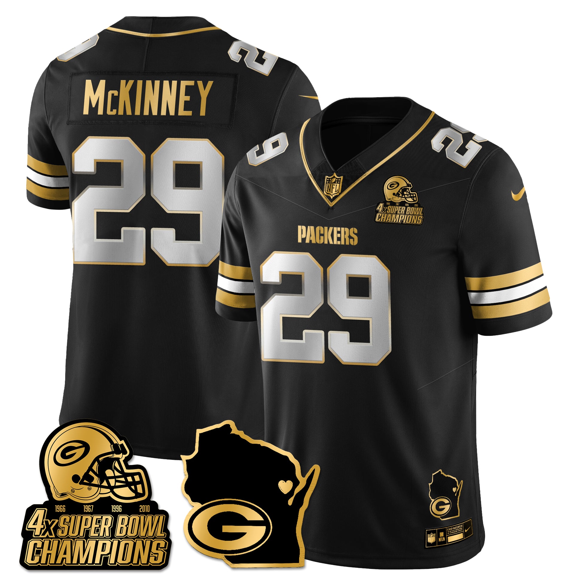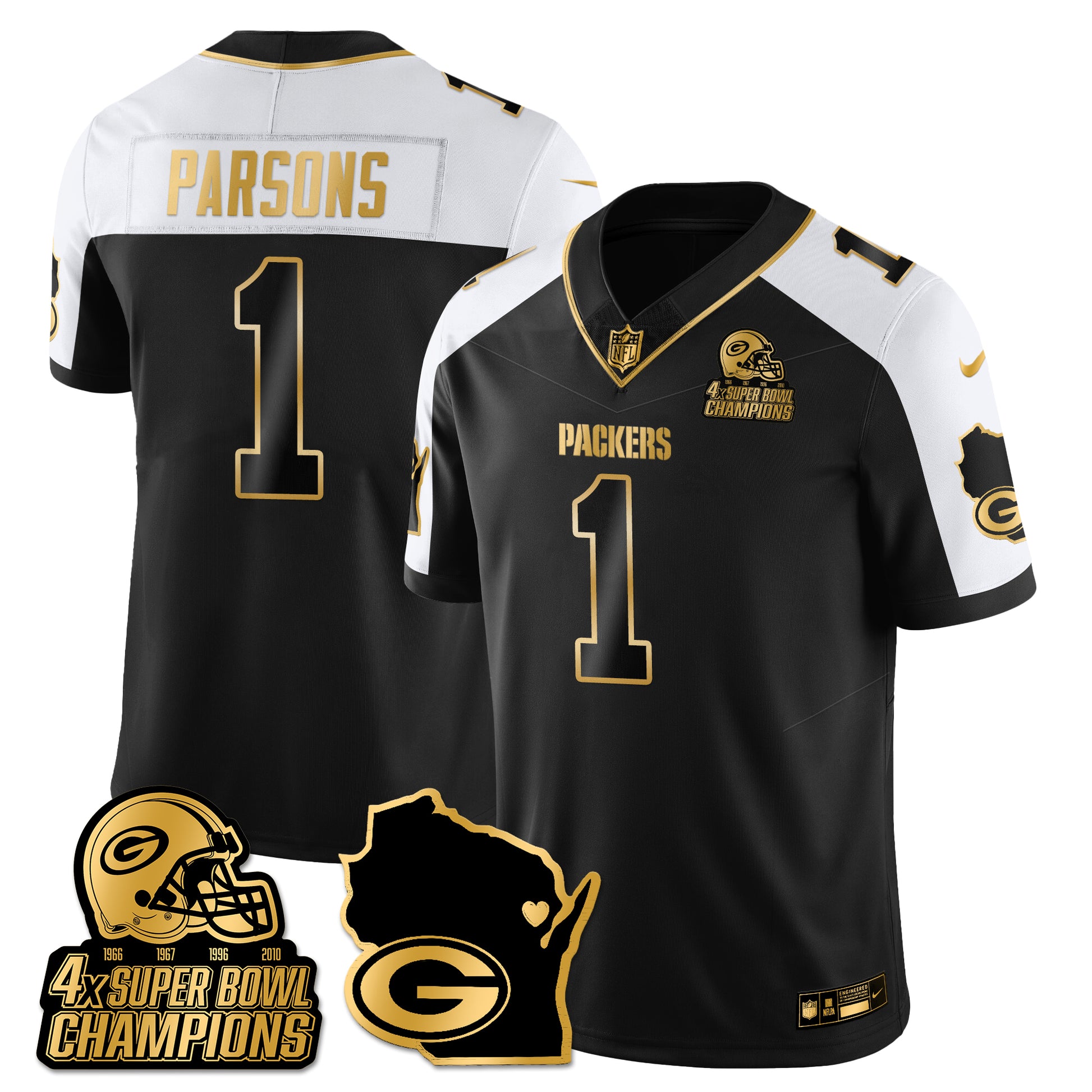 GB 4-Time Champions Patch Vapor Limited Gold Jersey - All Stitched