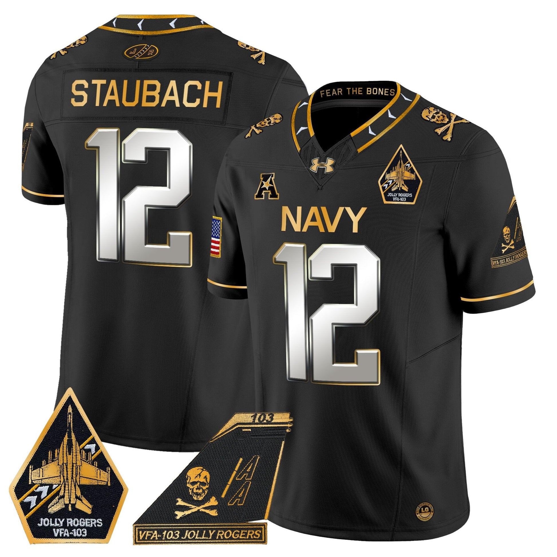 Navy Midshipmen 2024 Jolly Rogers Patch Gold Vapor Limited Jersey - All Stitched