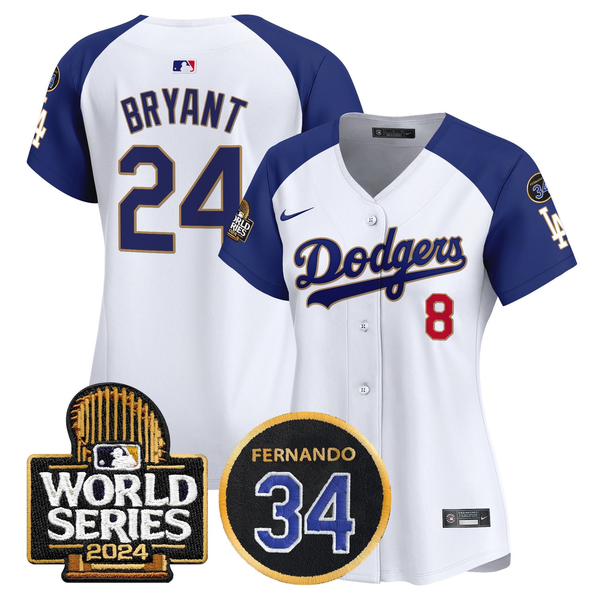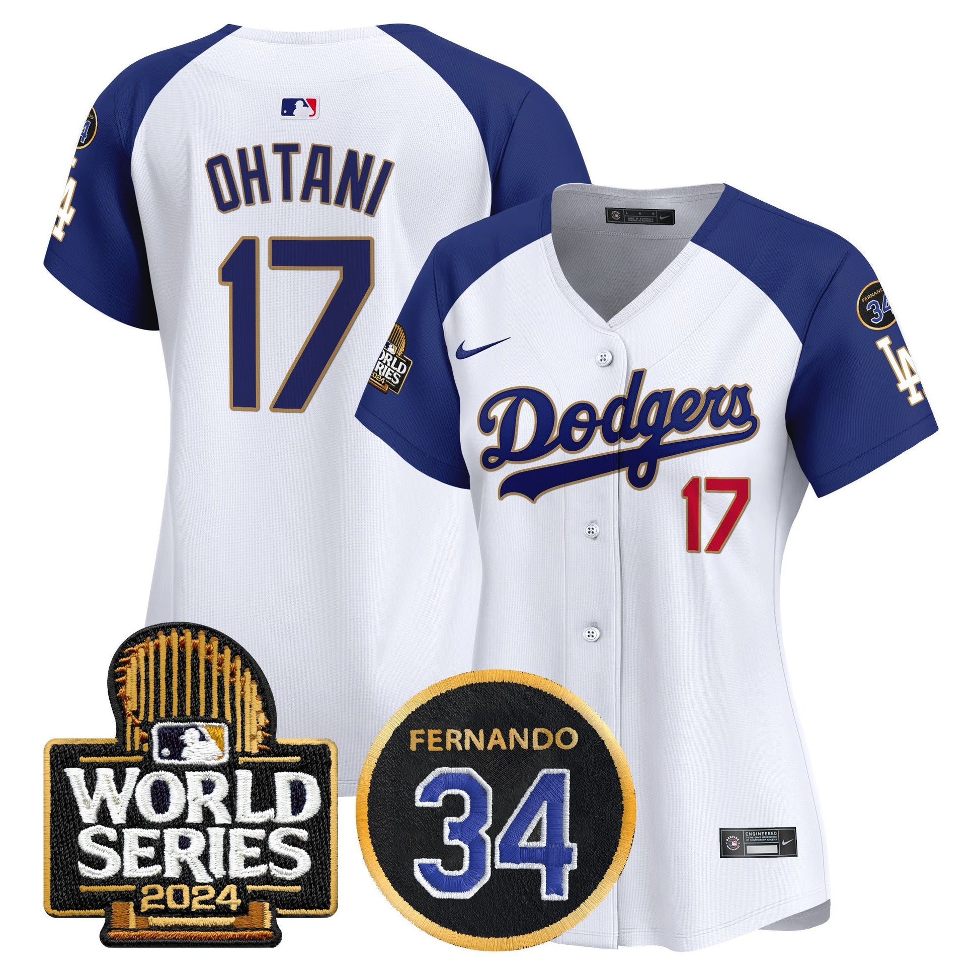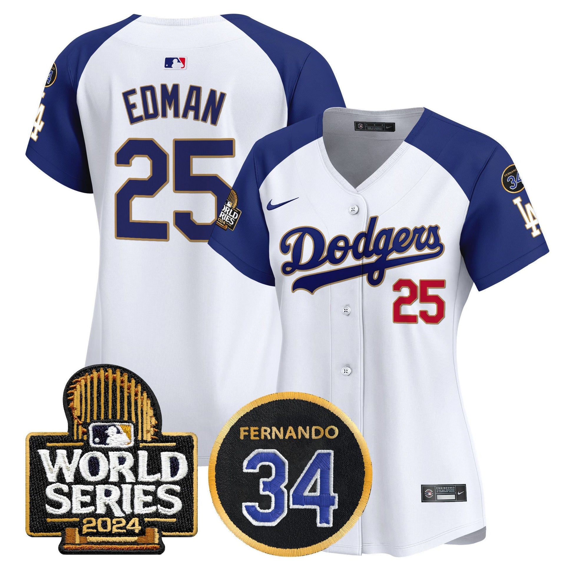 Women's Dodgers Fernando Memorial & 2024 World Series Patch Vapor Premier Limited Jersey - All Stitched