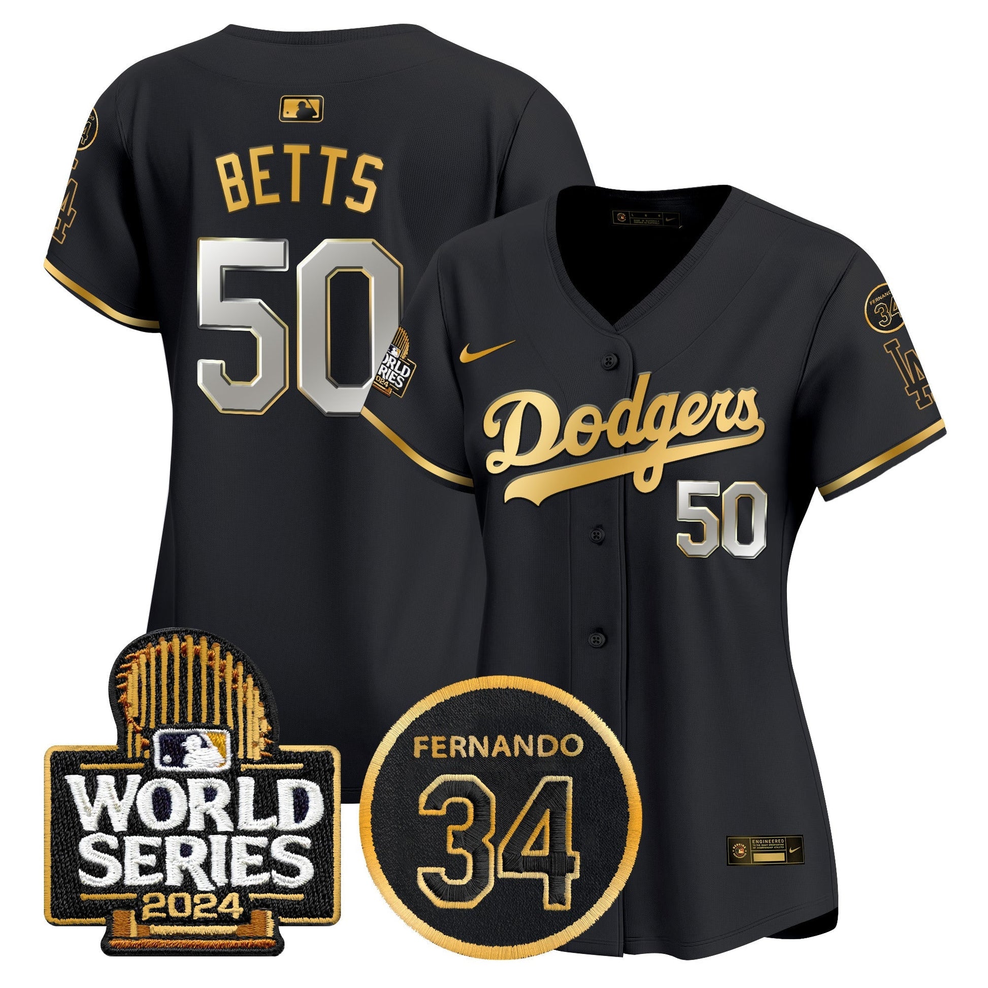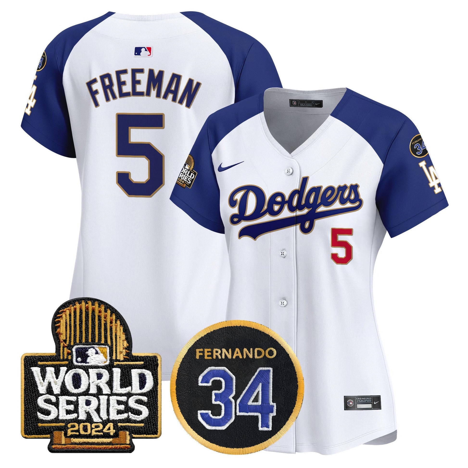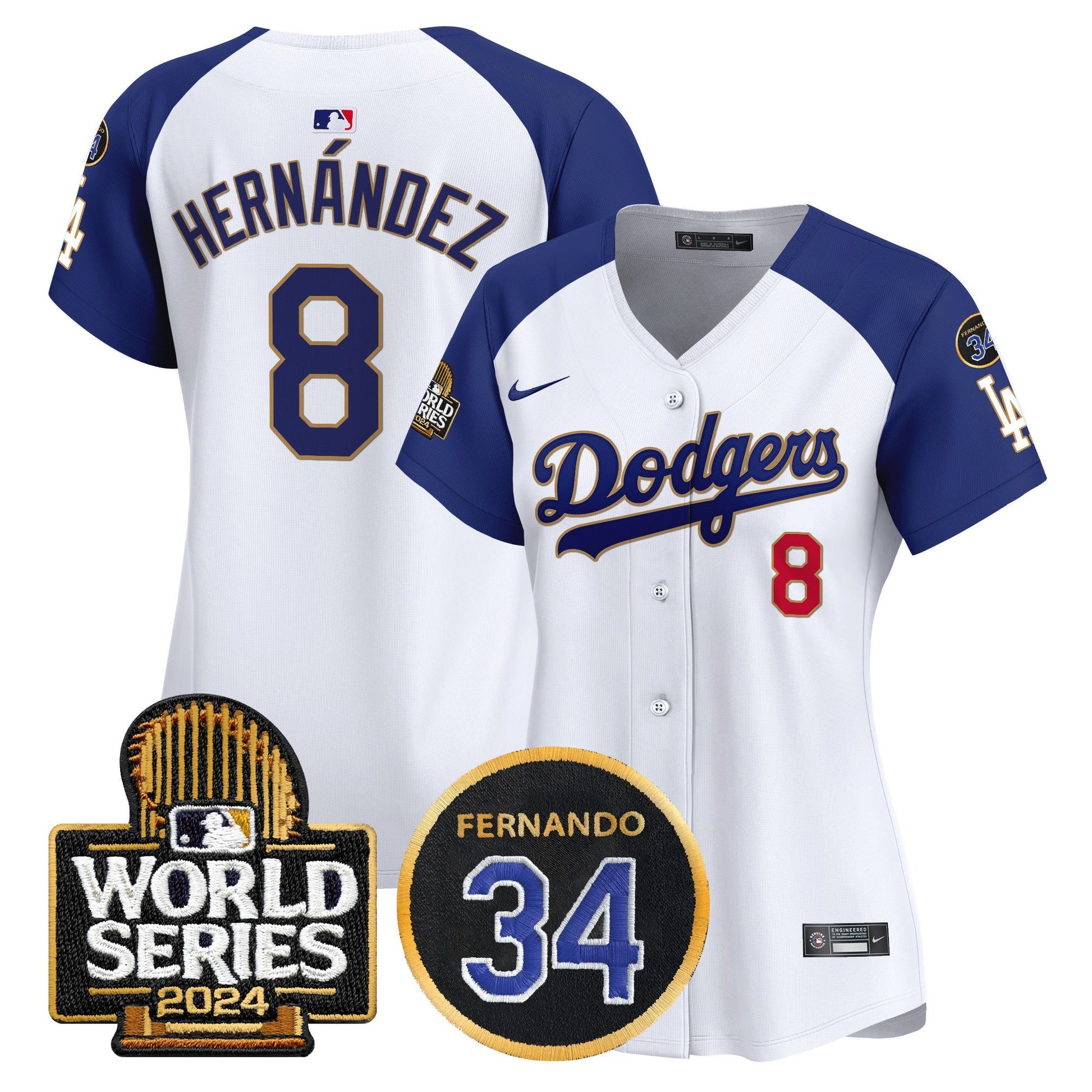 Women's Dodgers Fernando Memorial & 2024 World Series Patch Vapor Premier Limited Jersey - All Stitched