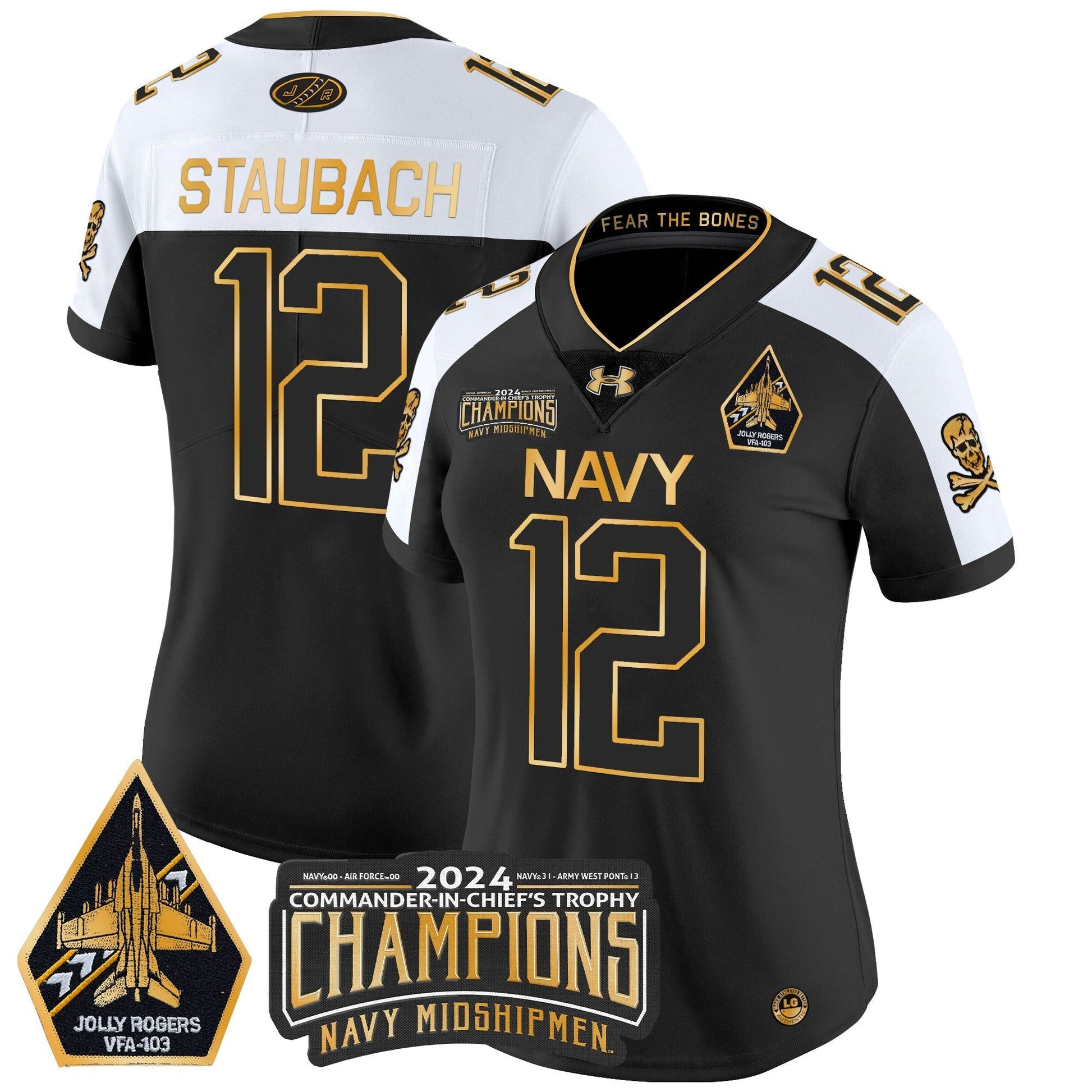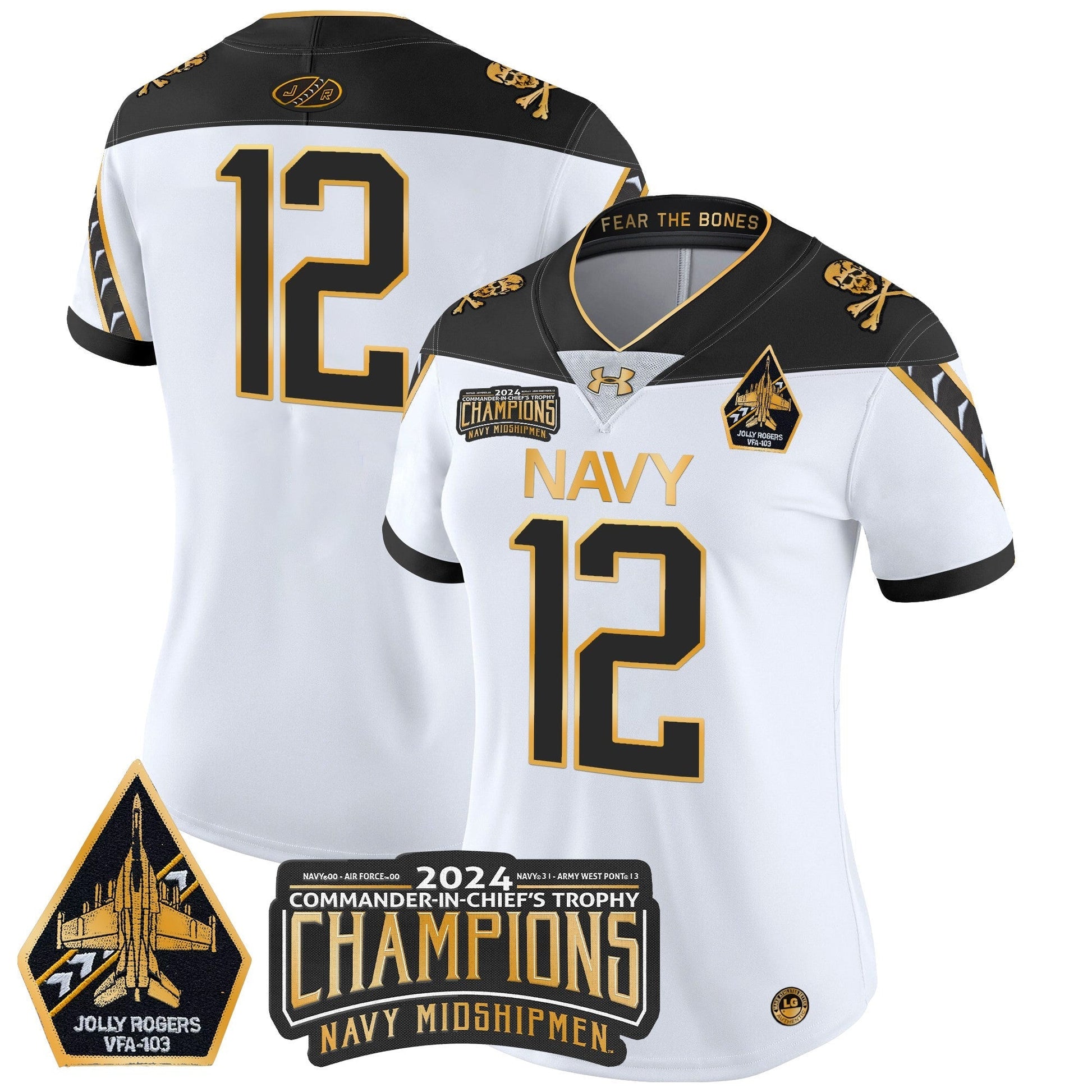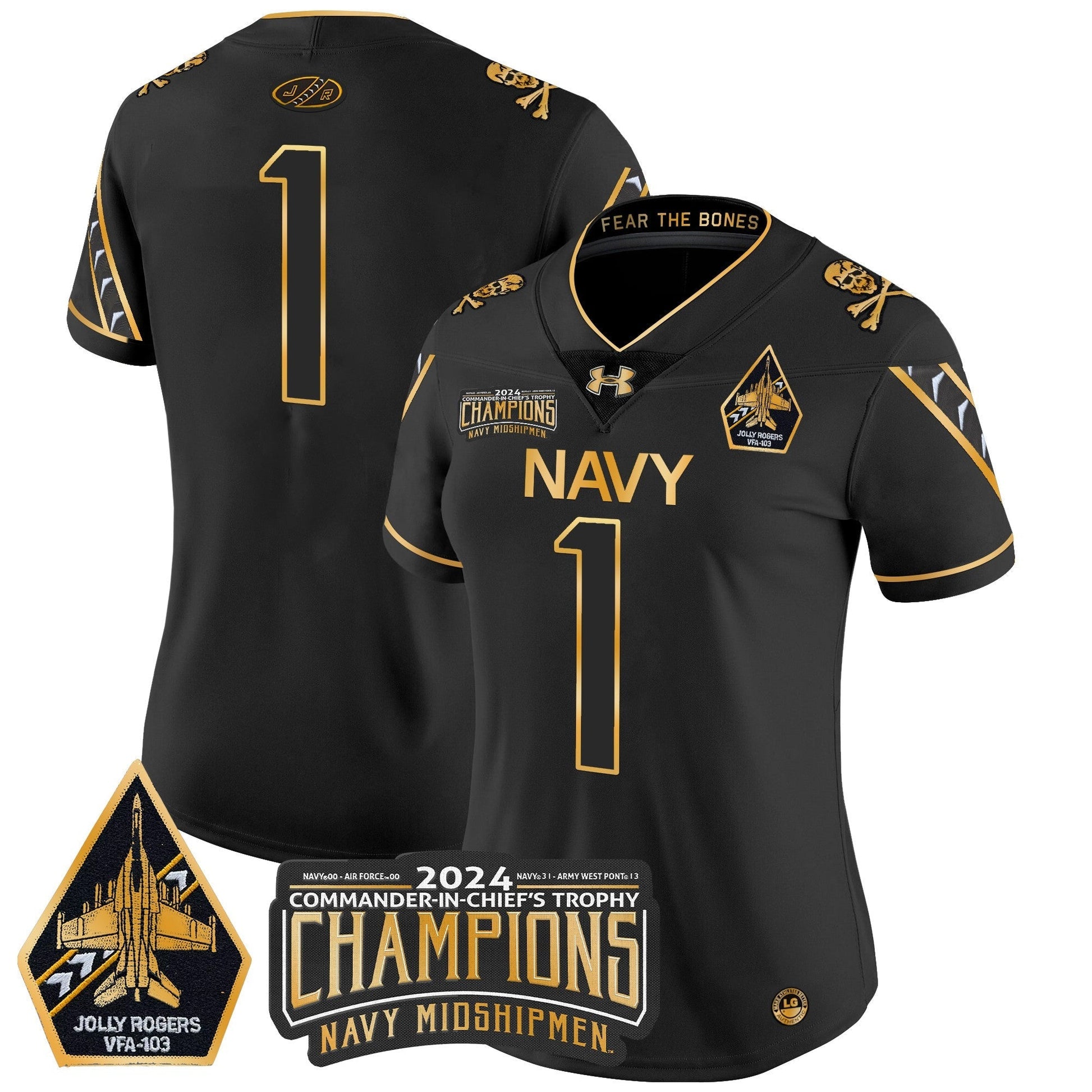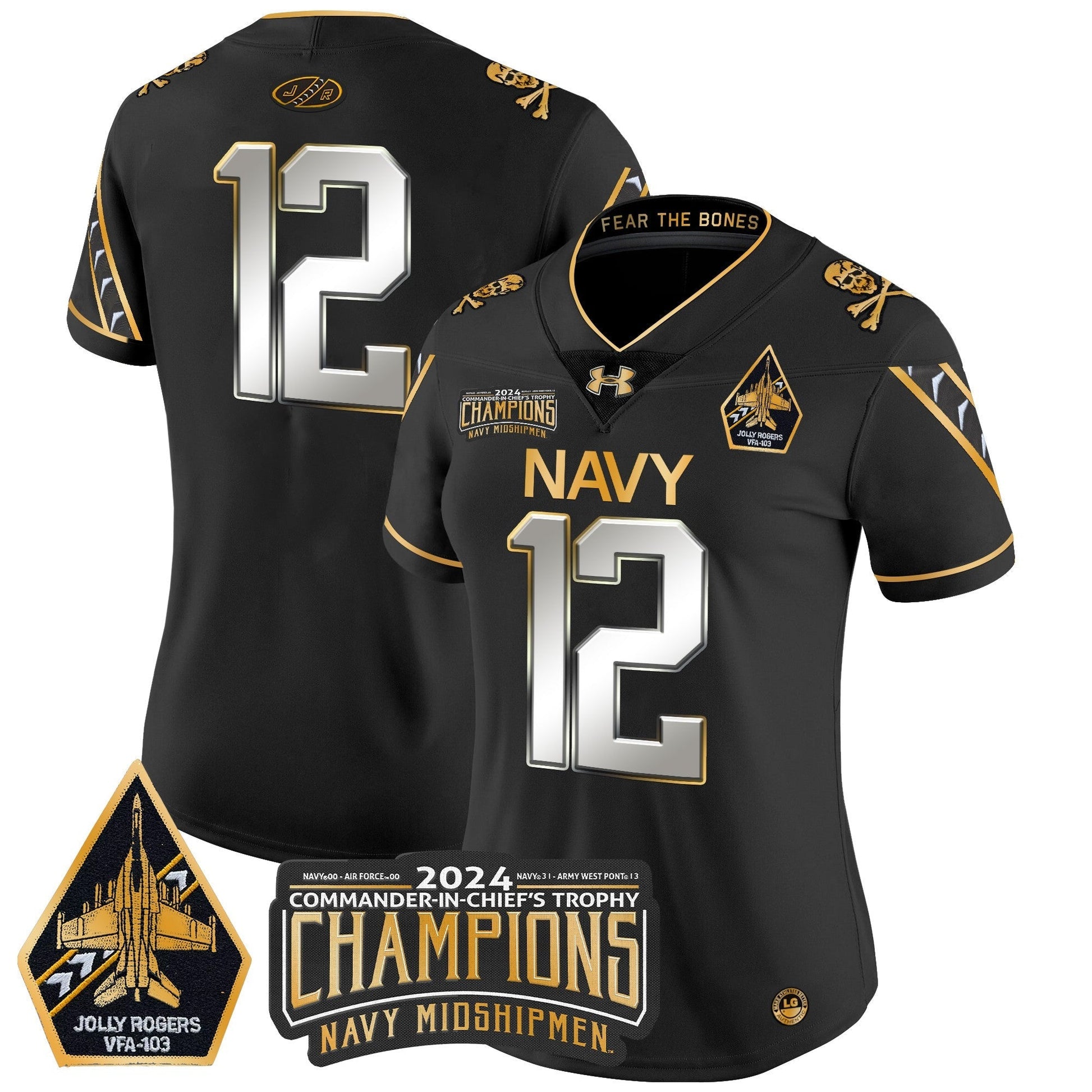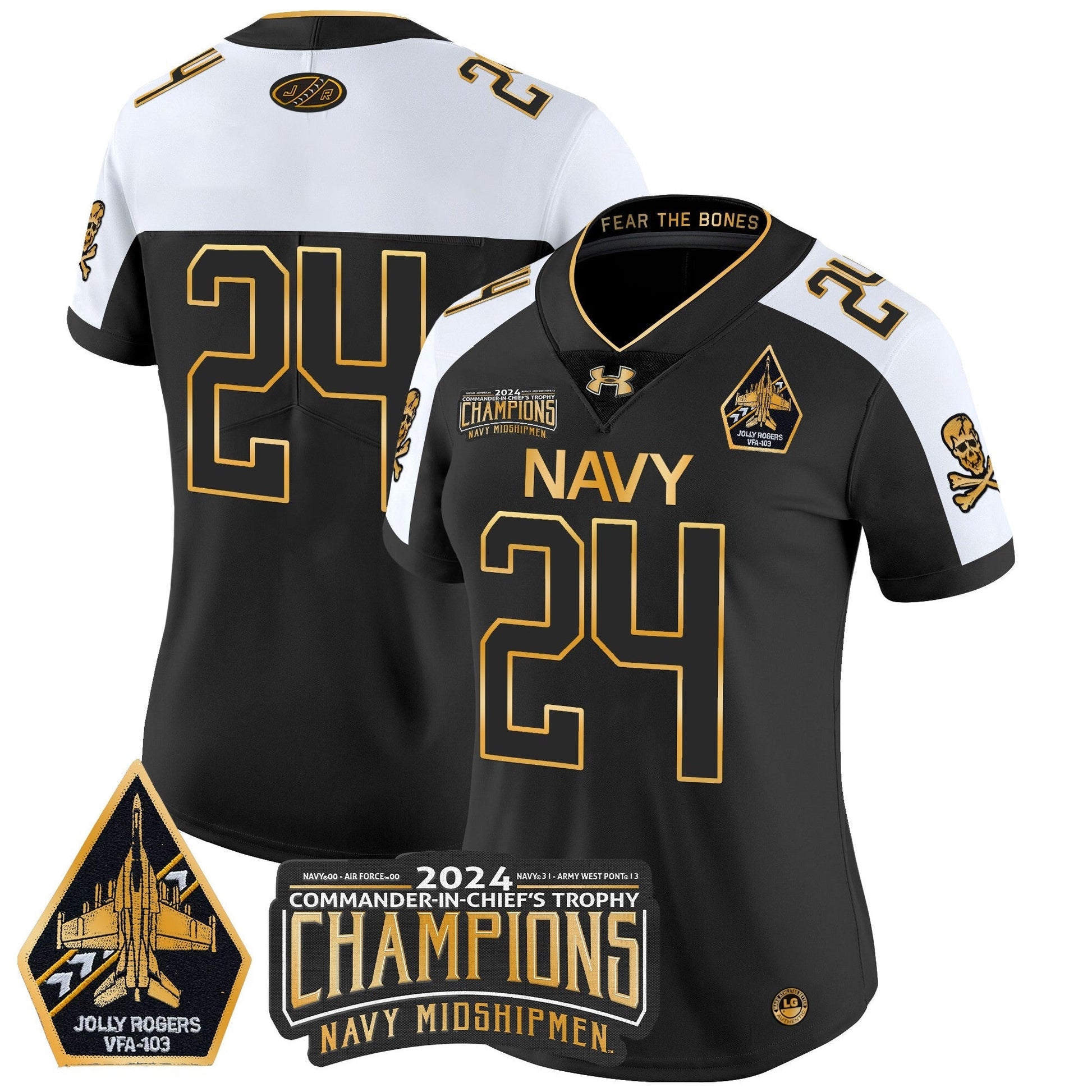 Women's Navy Midshipmen 2024 Commander-In-Chief's Trophy Champions Patch Gold Vapor Limited Jersey - All Stitched