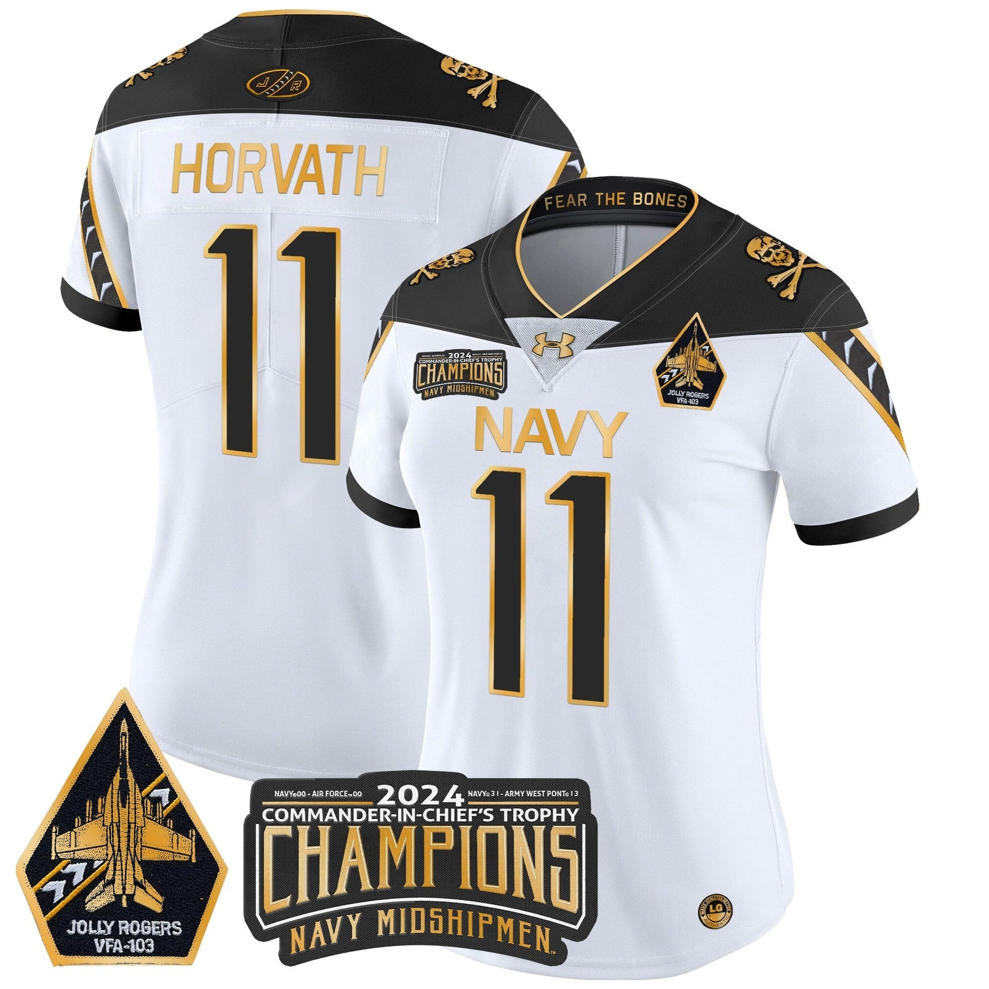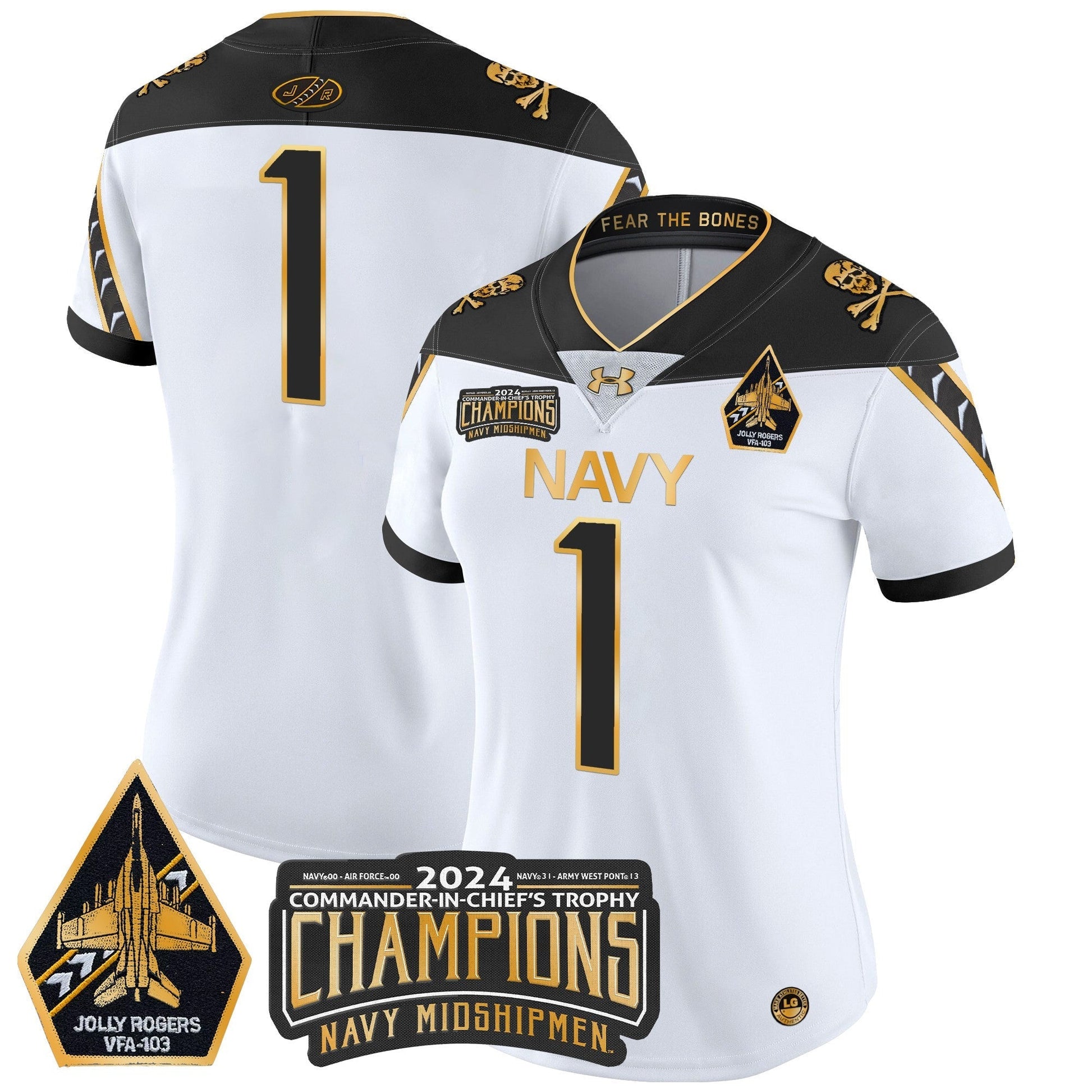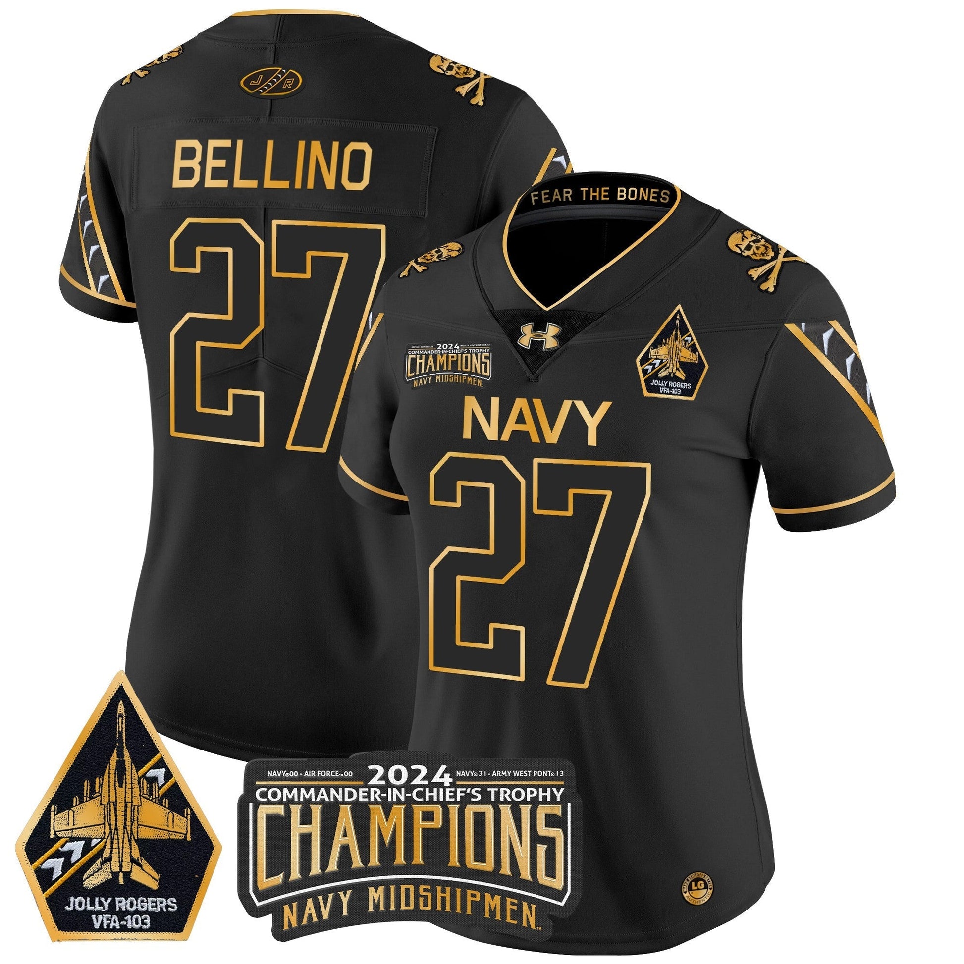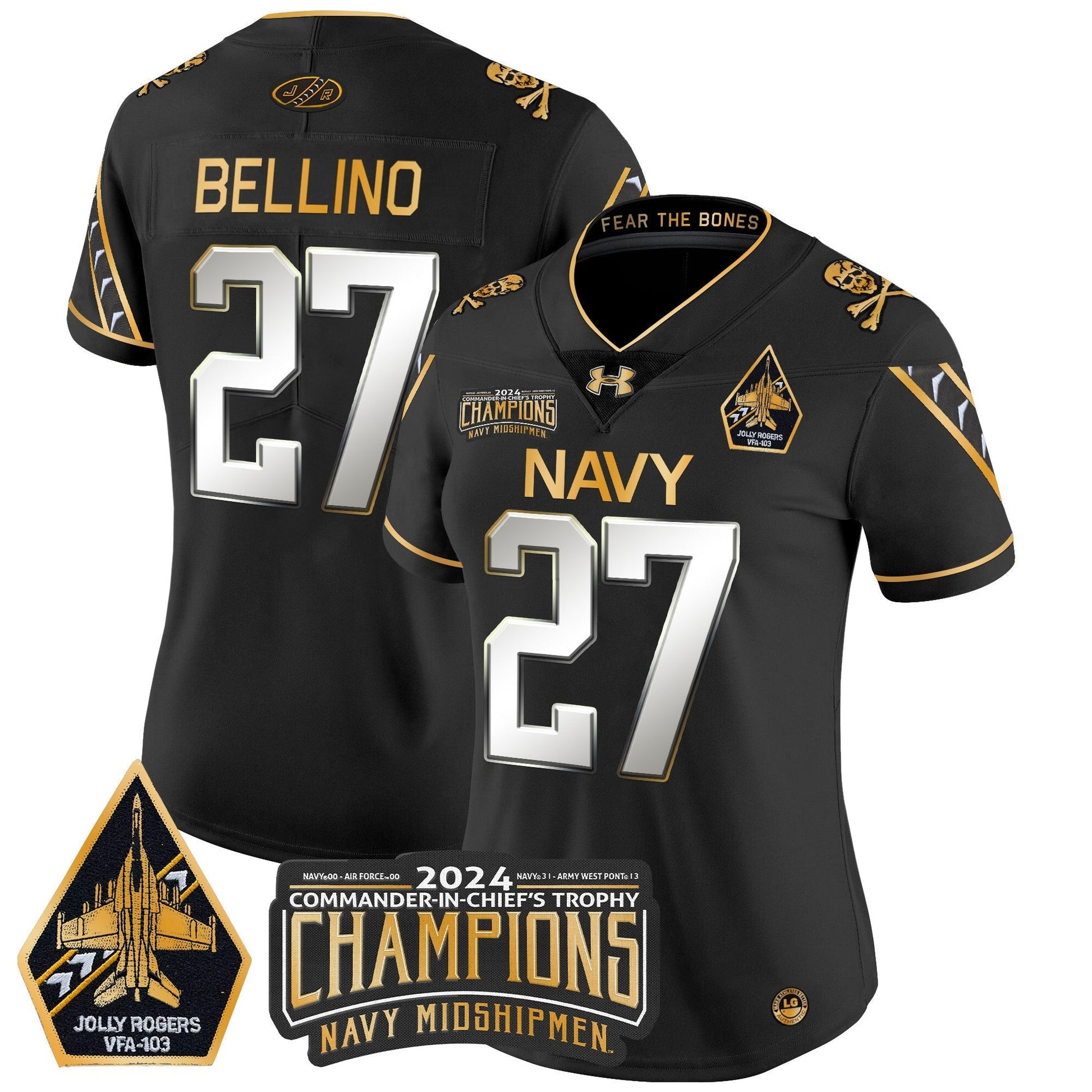 Women's Navy Midshipmen 2024 Commander-In-Chief's Trophy Champions Patch Gold Vapor Limited Jersey - All Stitched