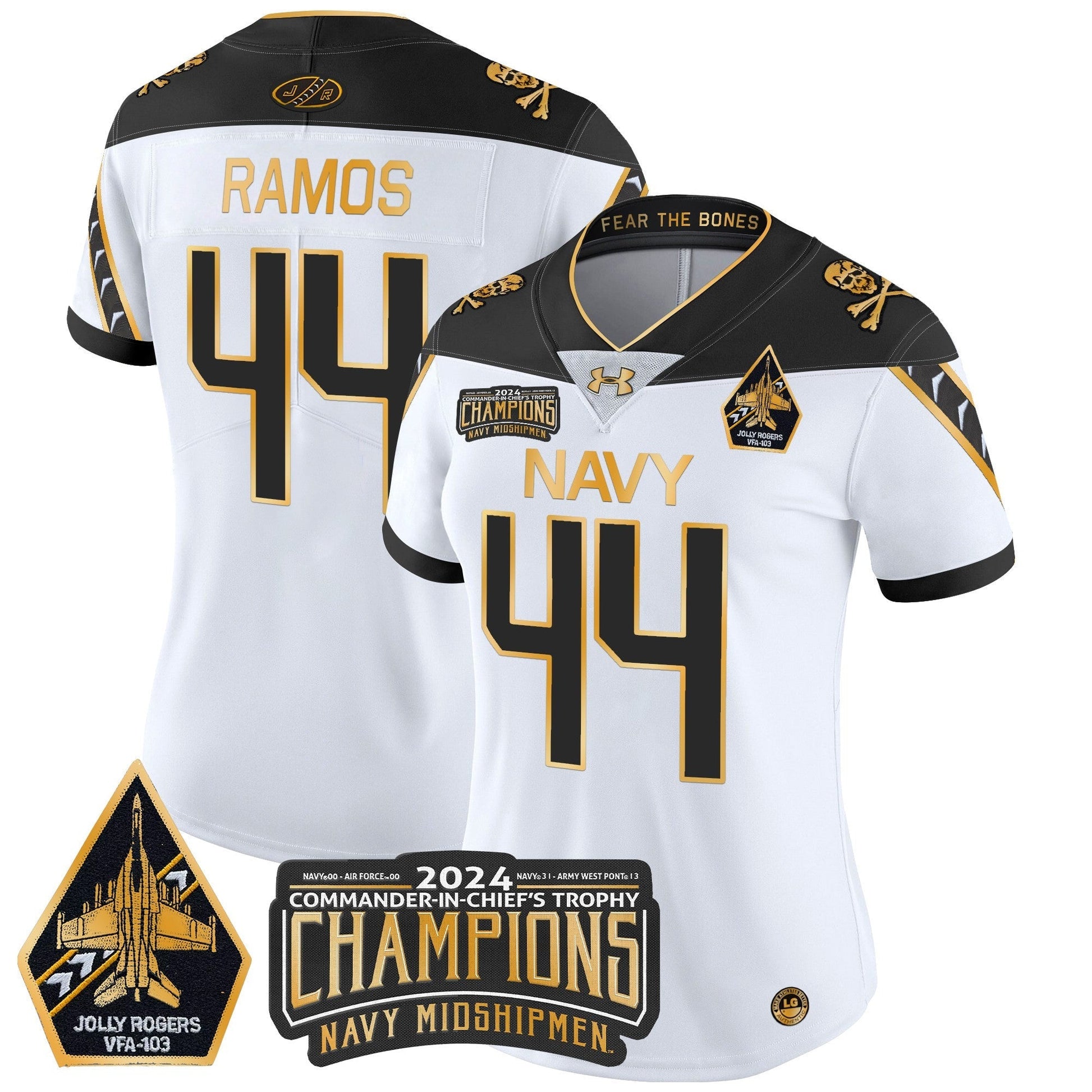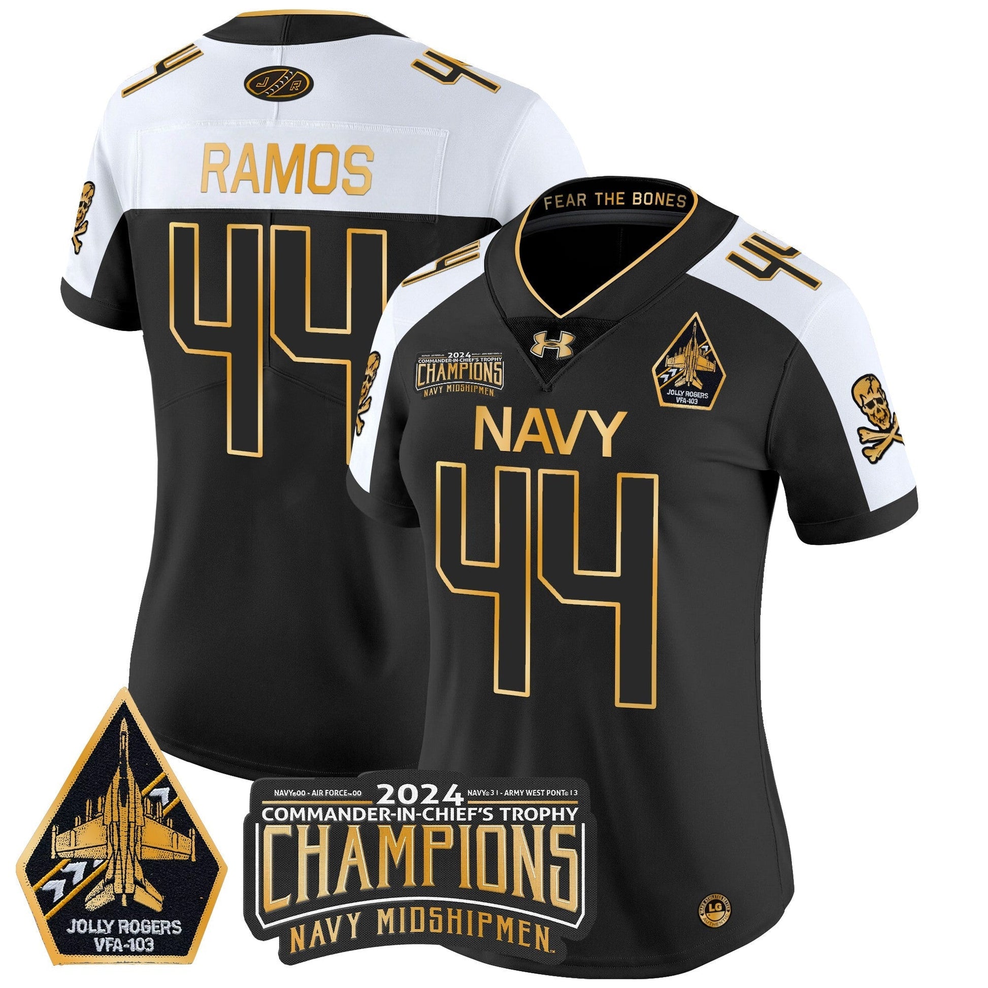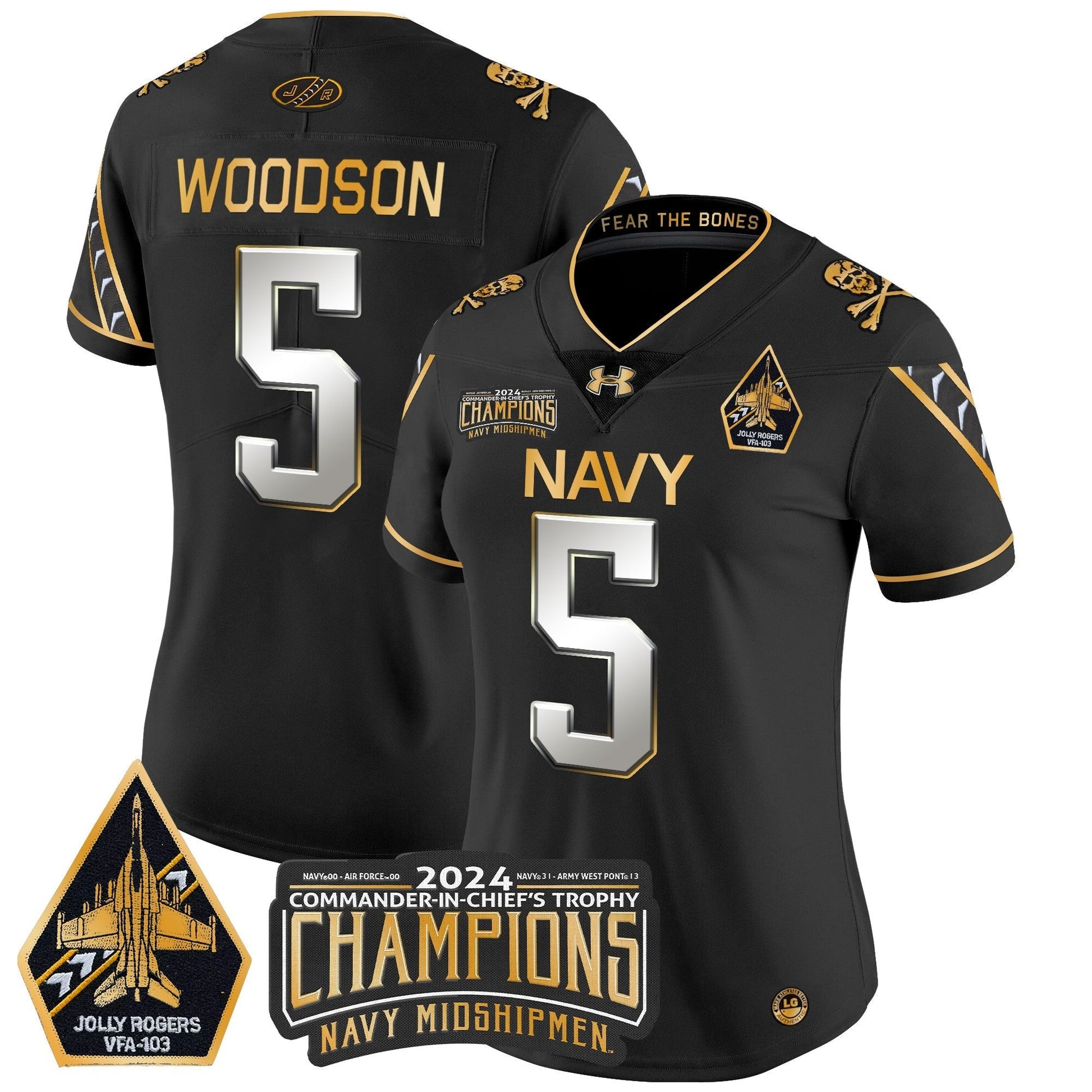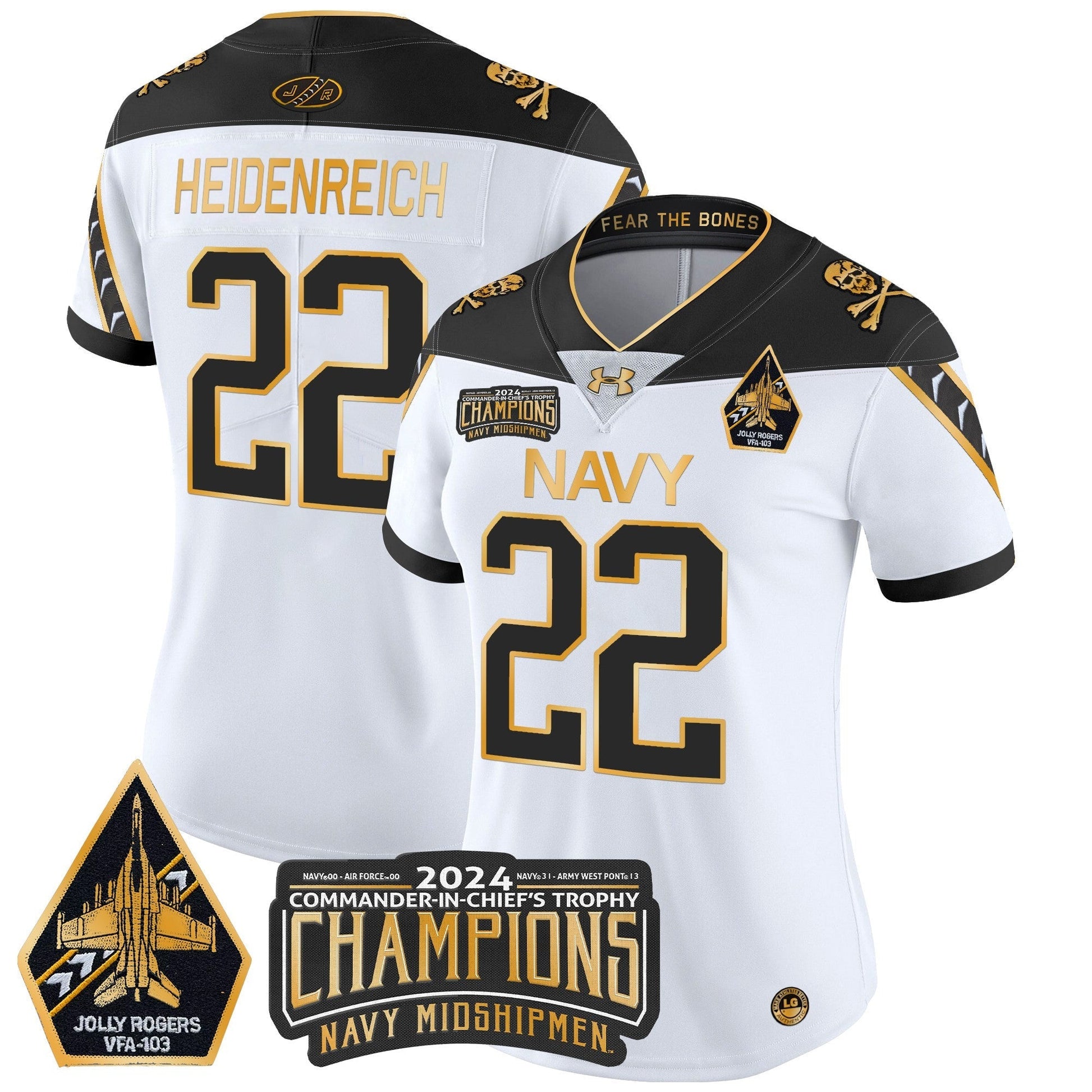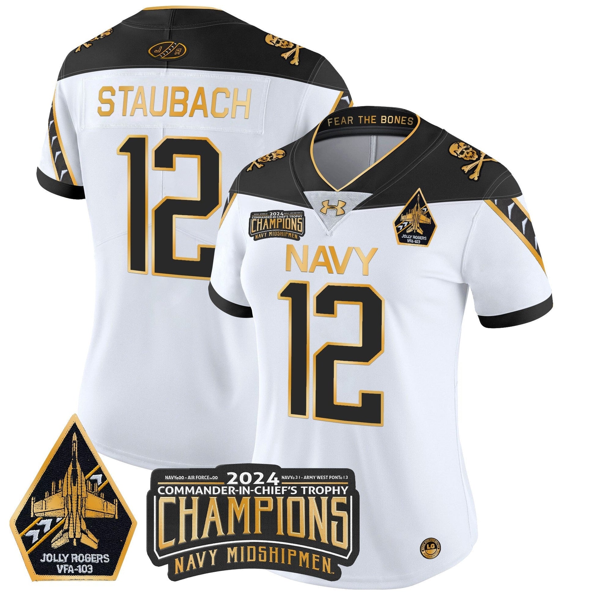 Women's Navy Midshipmen 2024 Commander-In-Chief's Trophy Champions Patch Gold Vapor Limited Jersey - All Stitched