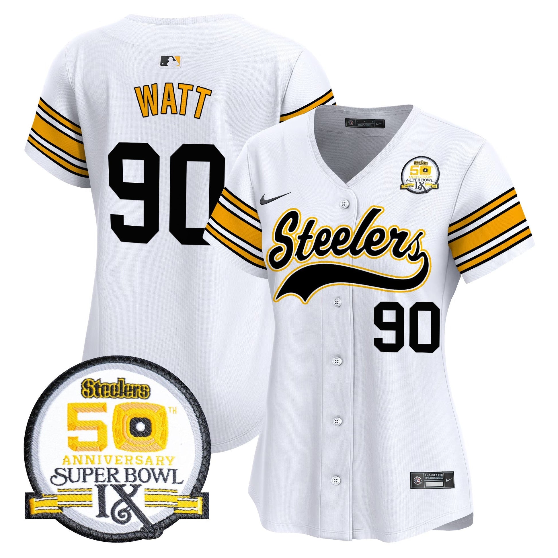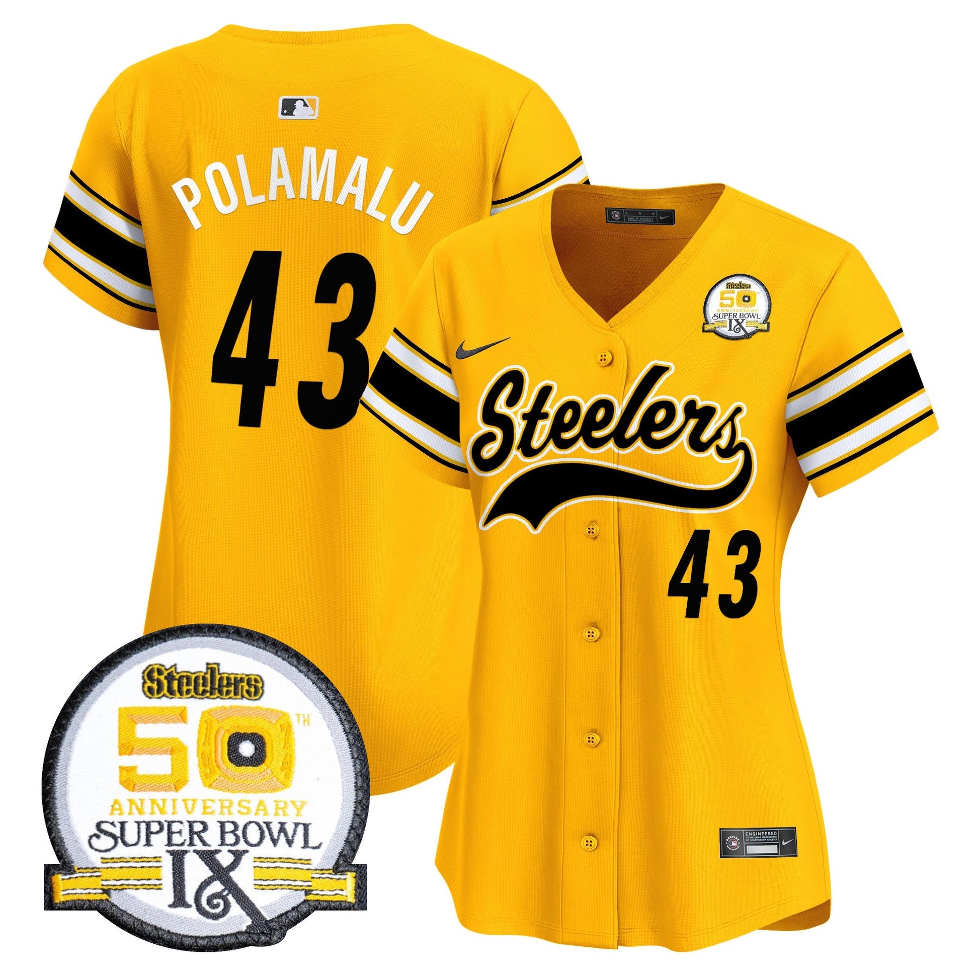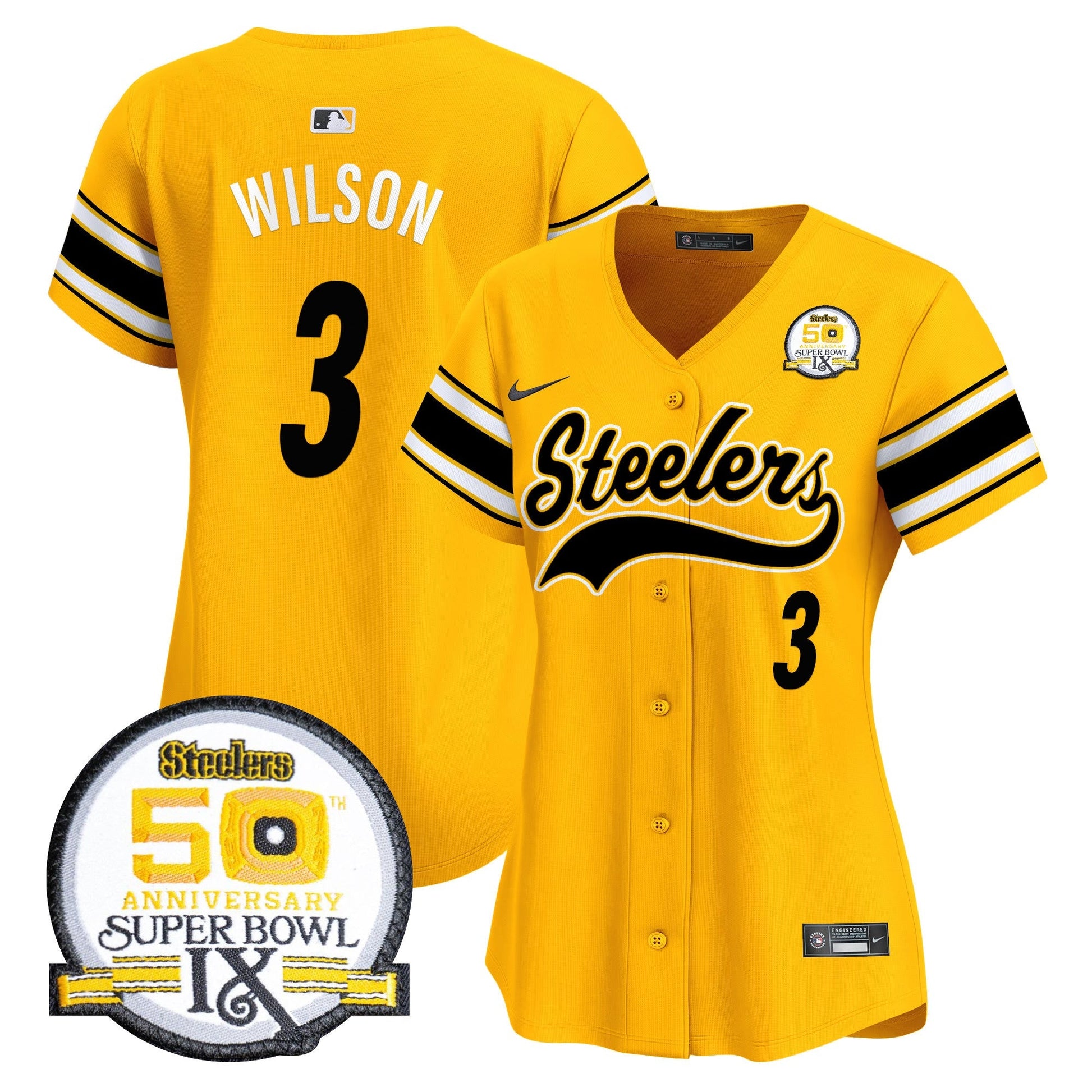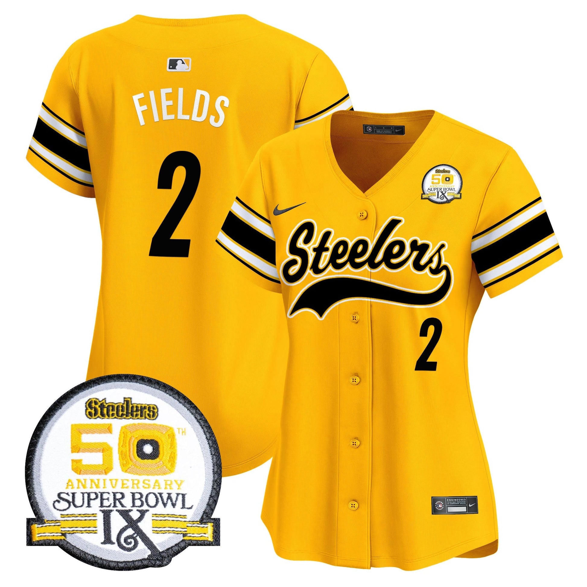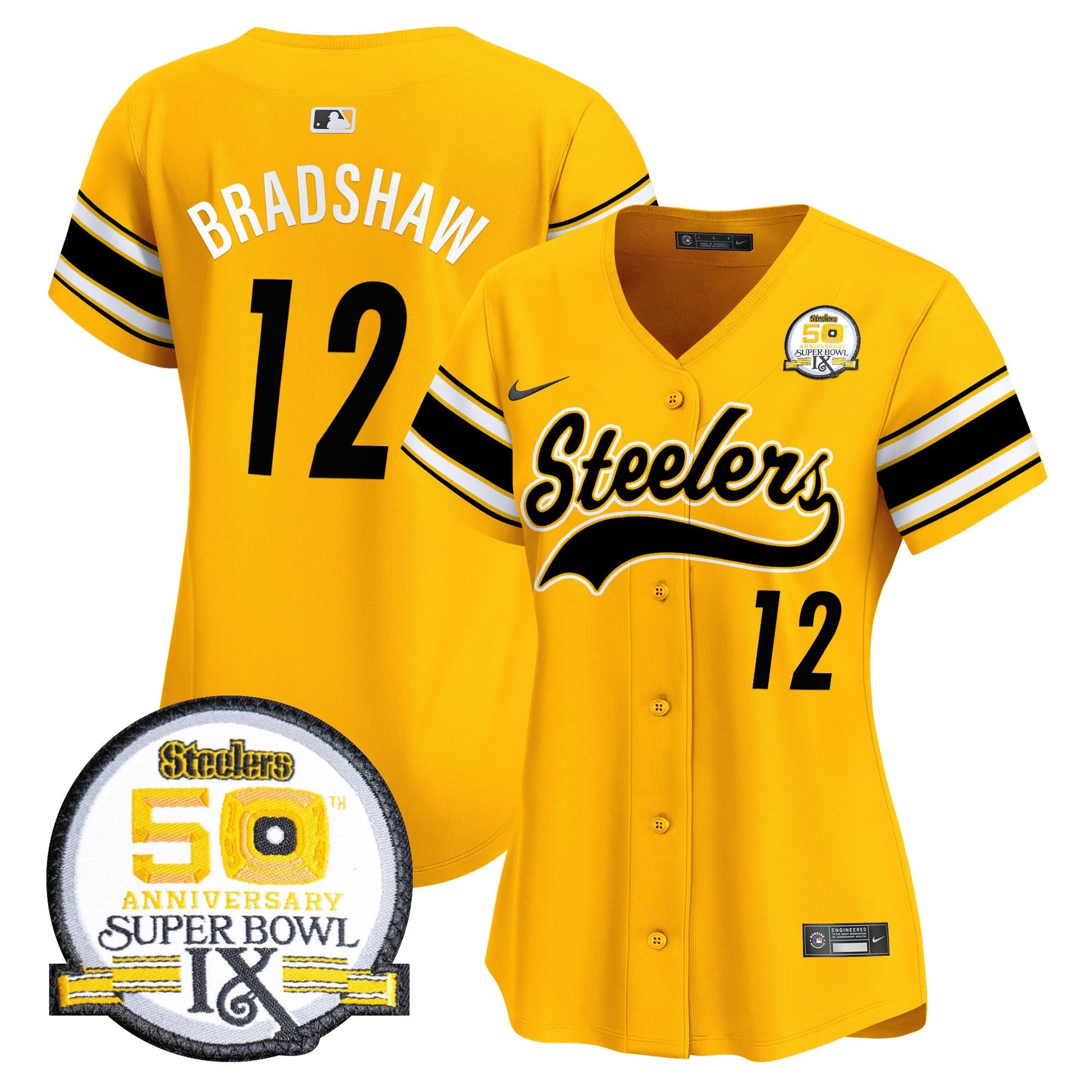 Women's Steelers 50th Anniversary Of Super Bowl IX Patch Vapor Premier Baseball Jersey - All Stitched